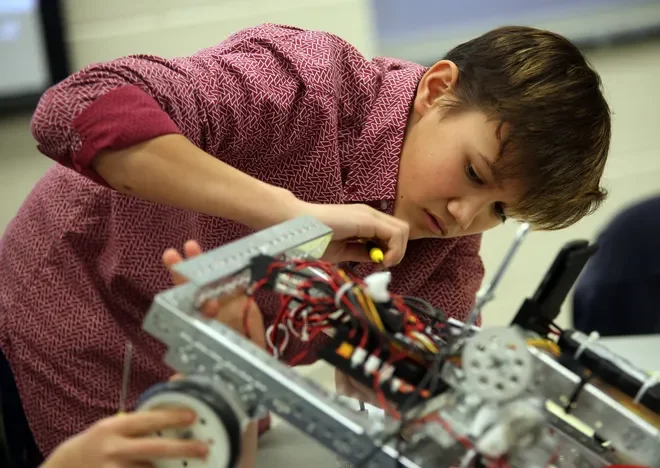 Students build a cardboard robot model and diagram how sensors and AI would work.